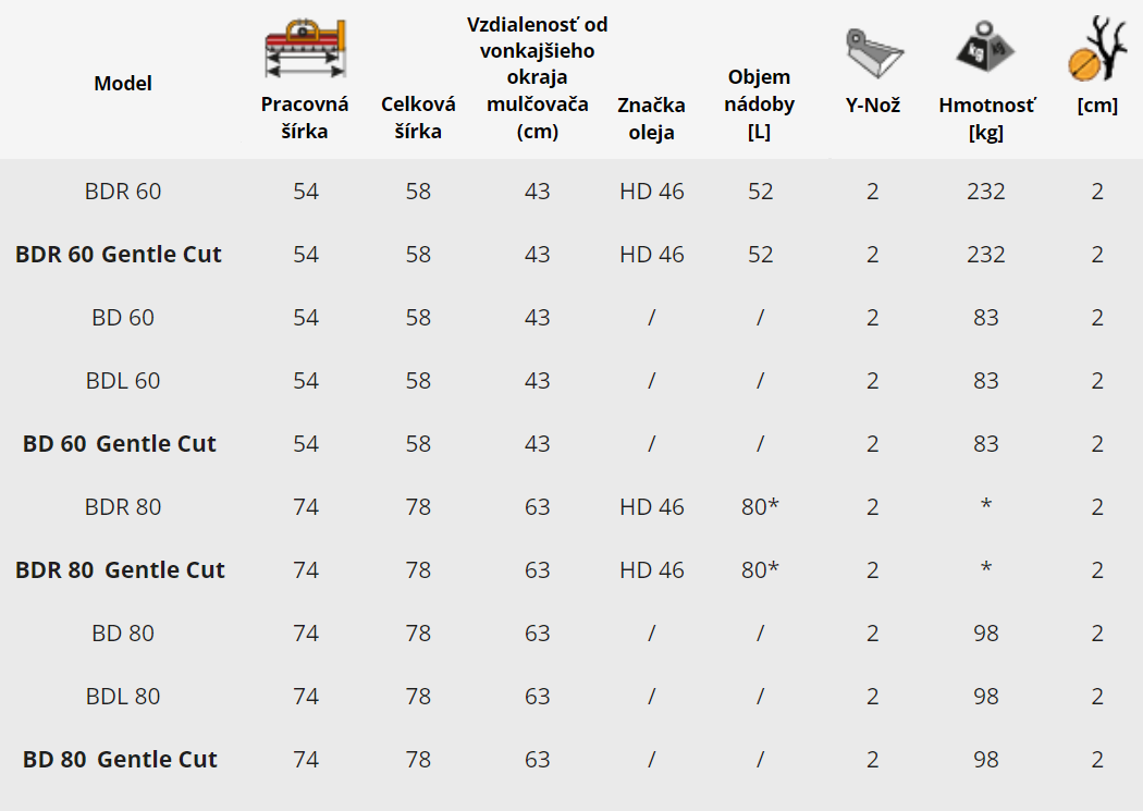 Modely BD a BDL využívajú na pohon hydraulický systém traktora, je možné ich namontovať na viacero traktorových prídavných zariadení (mulčovač, kultivátor…). Pripája sa k jednému páru hydraulických okruhov.
